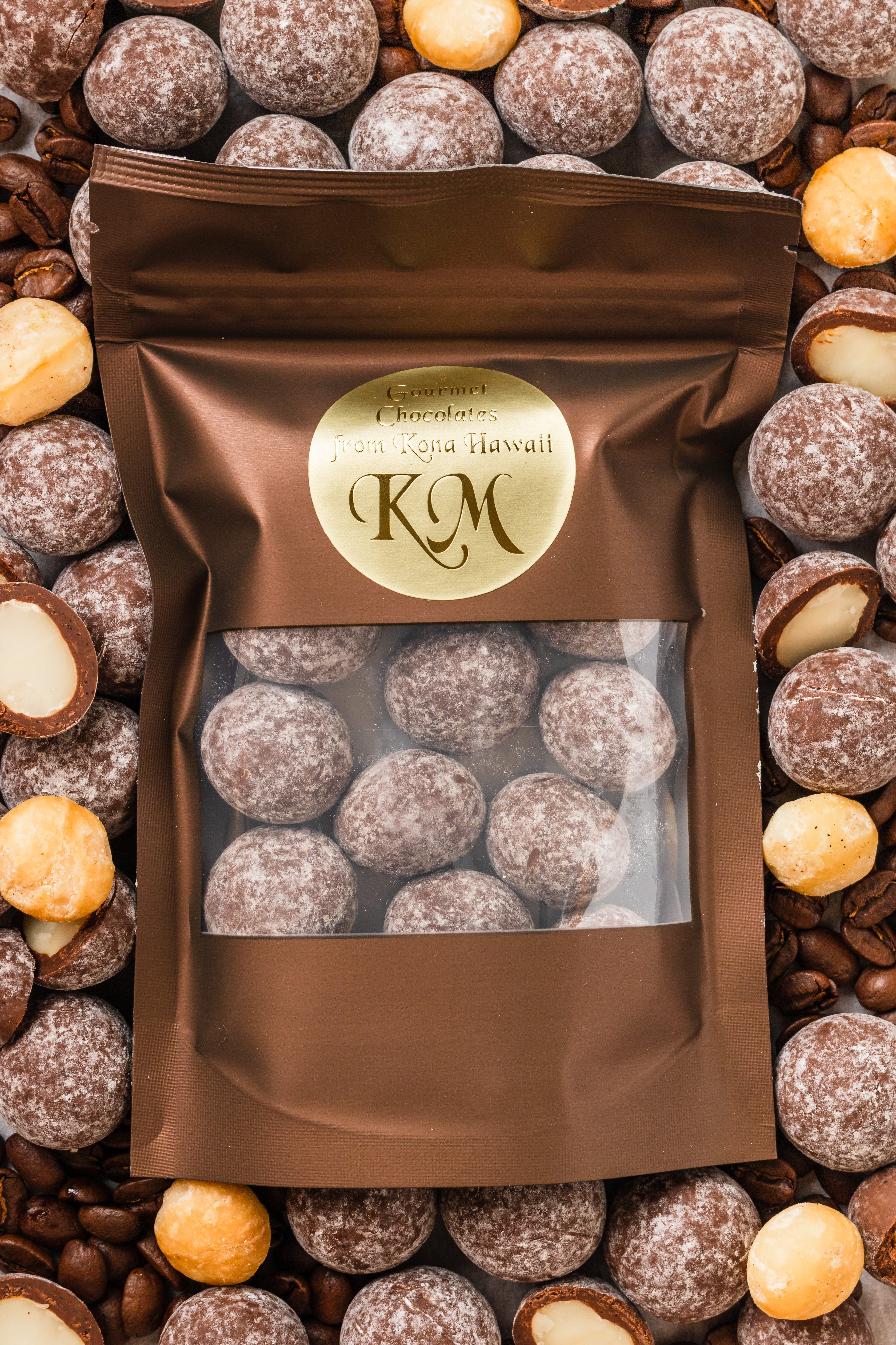 These whole macadamia nuts are sourced from the Big Island and coated in our famous chocolate infused with 100% Kona Coffee.